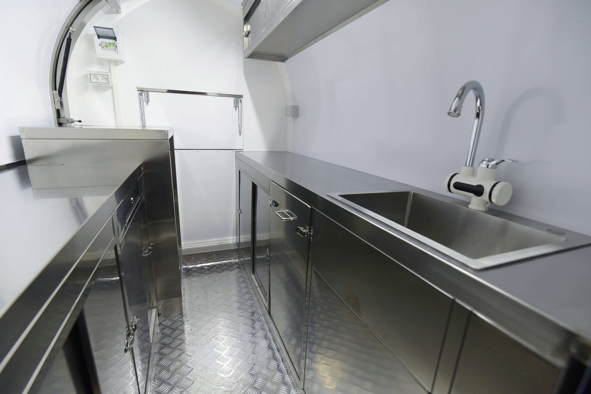 • Plancher aluminium antidérapant avec évacuation intégrée (trou de vidange pour nettoyage)